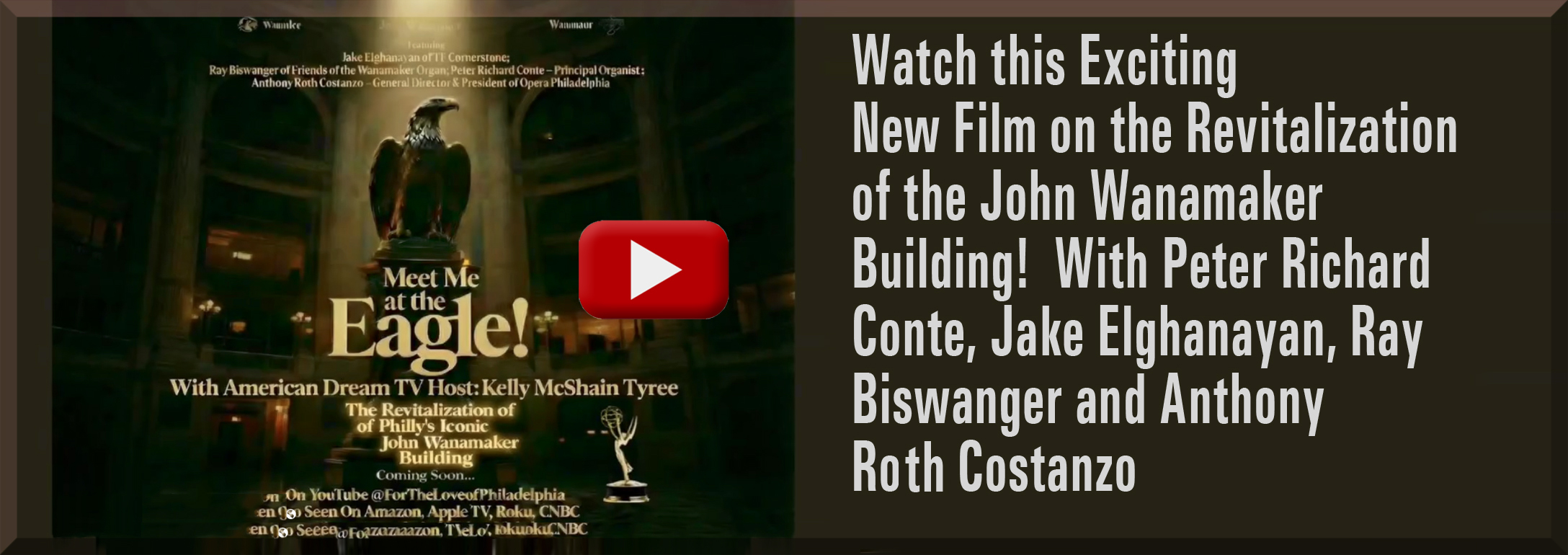 Watch a 6ABC tribute to the Wanamaker Organ by clicking the box above! Enjoy a Pipedreams Michael Stairs tribute featuring the Wanamaker Organ HERE!